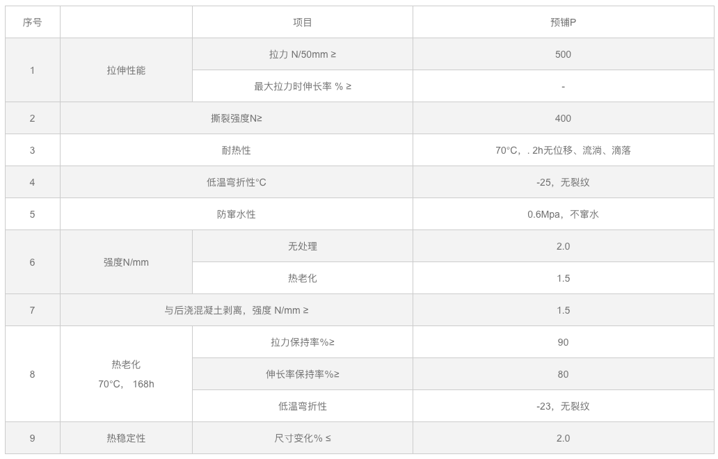 具备优异的抗拉、延伸、耐根穿刺、耐候、适应基层变形能力强等性能。